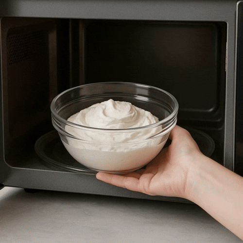 Empty the entire pack of buttercream into a microwave-safe bowl. Microwave the buttercream for 5 seconds on medium power setting.